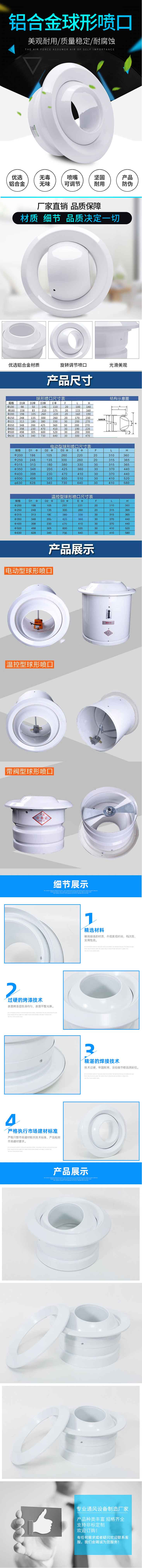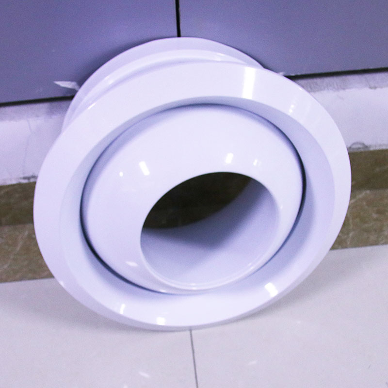 球形噴口主(zhǔ)要用(yòng)於空調送風口與(yǔ)人員活動範圍有較大(dà)距離的(de)環境裏,公共場所如各種大廳及裝配車間等